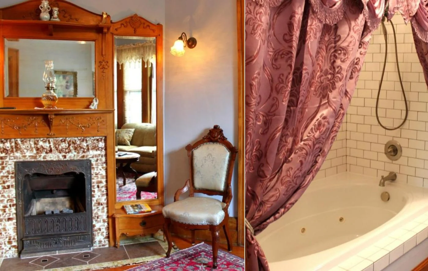 This adults-only B&B boasts unique rooms, many with its own hot tub and cozy fireplace, making it ideal for a romantic getaway.